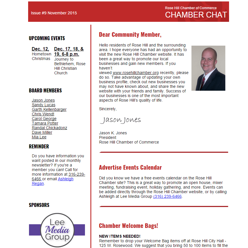 Hello residents of Rose Hill and the surrounding area. I hope everyone has had an opportunity to visit the new Rose Hill Chamber website. It has been a great way to promote our local …